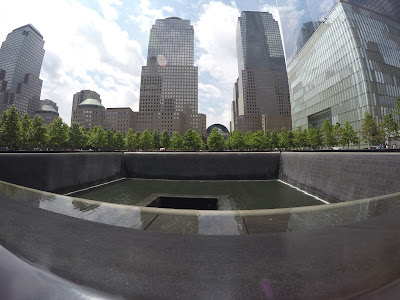 Desapareceram as Twin Towers com o trágico 9/11 mas nasceu um memorial, carregado de significado, onde diariamente são colocadas pequenas rosas perto dos nomes das vitimas deste acidente.