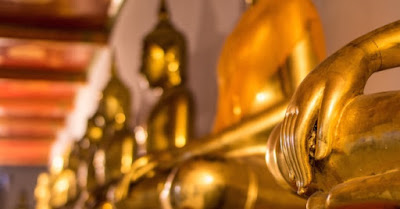 A religião é incontornável em Bangkok, tal como em todo o país e por isso os templos espalham-se por toda a cidade, sendo paragem obrigatória para os viajantes e, portanto, portanto foi isso mesmo que fizemos. Começámos, como não poderia deixar de ser, pelo Grand Palace, que consiste num conjunto de edifícios que já serviram de residência à família real. Pátios, templos e jardins conduzem ao Grand Palace em si, num conjunto de cortar a respiração. Vale realmente a pena visitar, os edifícios são lindíssimos e de uma grandiosidade difícil de explicar e todo o espaço envolvente é realmente impactante. O único senão é haver magotes e magotes de pessoas no local, o que tira um pouco de magia à visita e impede qualquer perspectiva de meditação!
