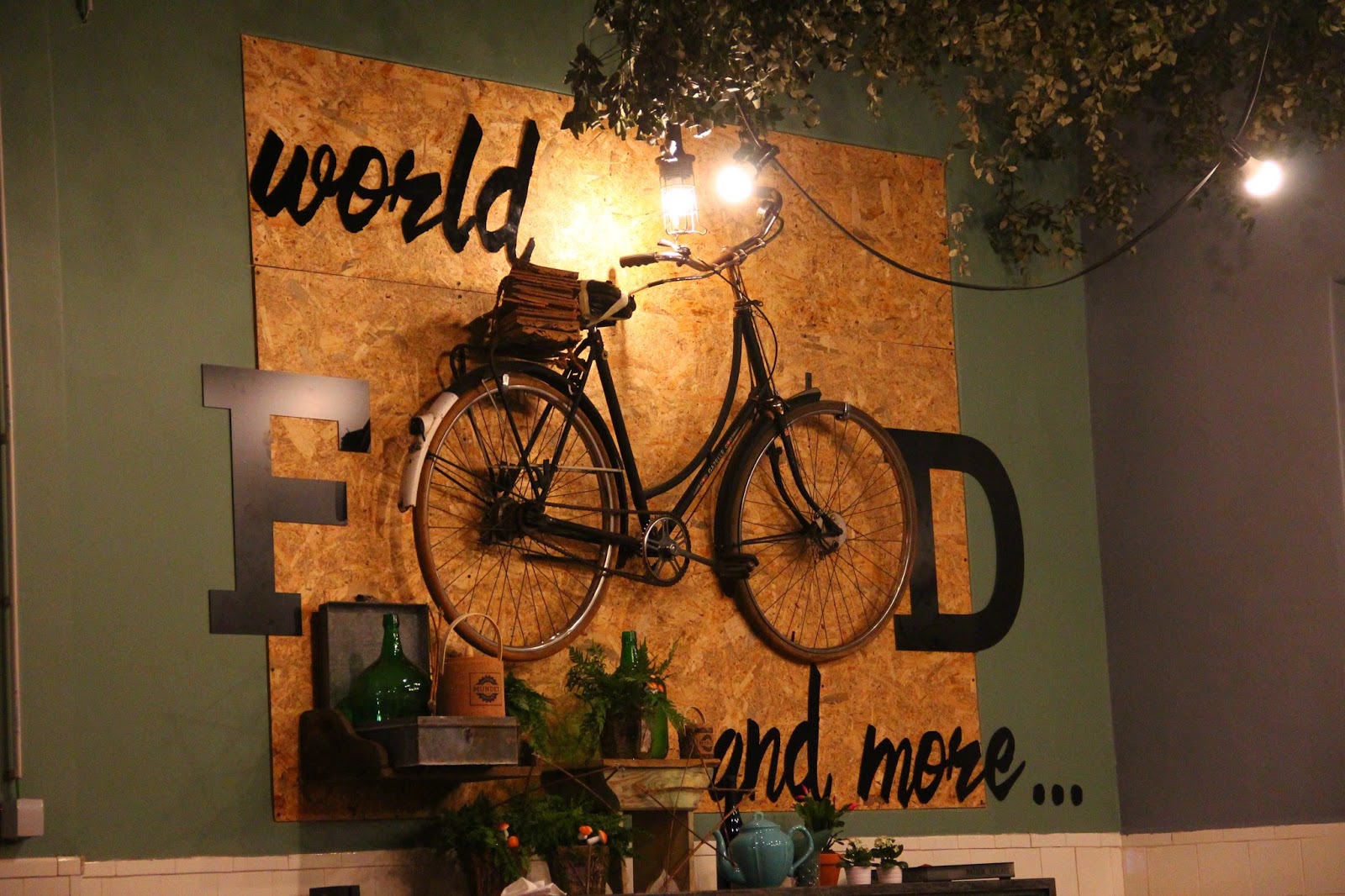 Agradou-me imenso o espaço, amplo e bem dividido, onde se situavam os refeitórios da antiga fábrica Mundet & Sons. As mesas de 1920 e o balcão do bar com movimento, por ser onde se enviava a cortiça, que ainda pertenceram à fábrica, dão um toque genial.